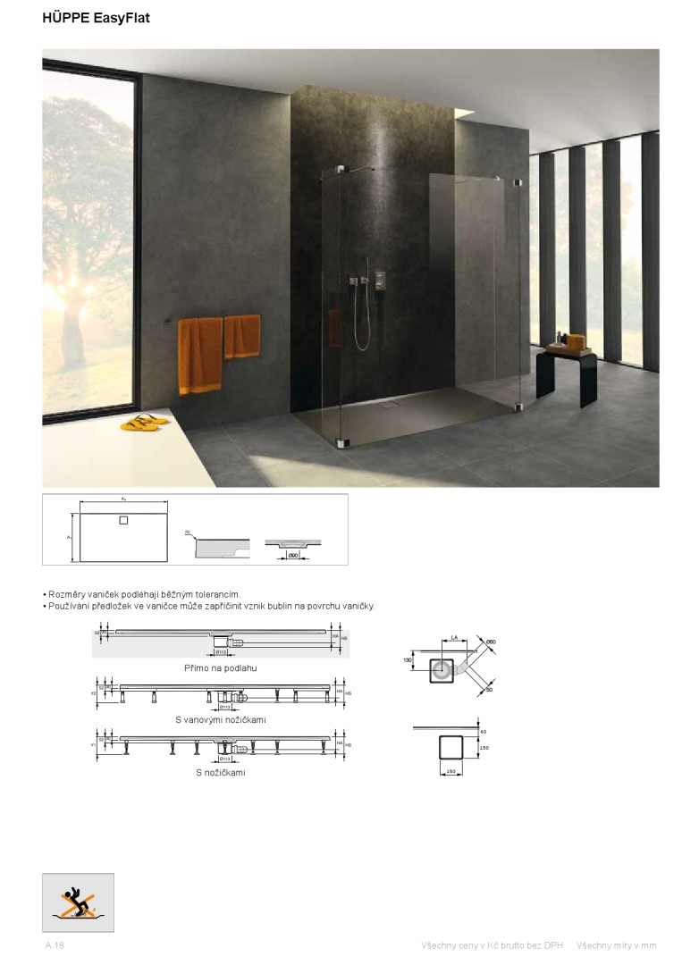 Hüppe EasyFlat sprchová vanička 4-úhelník
